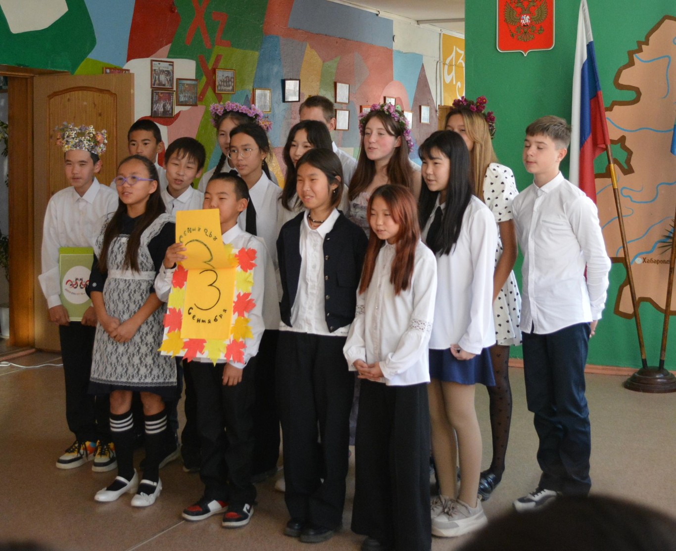 Продолжился вечер выступлениями ребят с песнями. Первыми на сцену вышли ребята 5 классов, исполнившие песню "Золотая осень". (Классные руководители Брал Н.В. и Зырянова Д.В.) О том, что осень - чудная пора, спели учащиеся 6б класса. (Кл. рук. Кай Н.П.) Что такое осень? На этот вопрос ответили ученики 6а и 7б классов, которые исполнили вечный хит группы ДДТ. (Кл. рук.Артеменко О.В. и Рандина В.А.) Завершили смотр песен 7а класс с композицией "3 сентября" М. Шуфутинского. (Кл. рук. Ходжер С.Ю.)