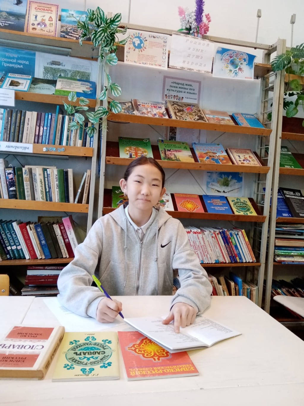проводимого в рамках ежегодных торжественных мероприятий, посвященных Дню Родных языков среди обучающихся образовательных организаций края. В прошлом году команда "Очу", что в переводе с ульчского означает "маленькие рыбки", выступила достойно и привезли два диплома. Сейчас команда обновилась, но по-прежнему активно работает, уверенно двигаясь к финалу конкурса под руководством своего наставника Кучекта Натальи Алексеевны, педагога-библиотекаря школы. Пожелаем ребятам удачи.